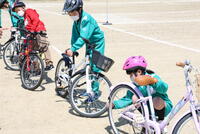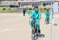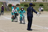 駐在さんや交通指導員さんが子供たちに直接指導をしてくださり、低学年は道路を渡る練習、3年生以上は自転車の安全な乗り方を学習しました。